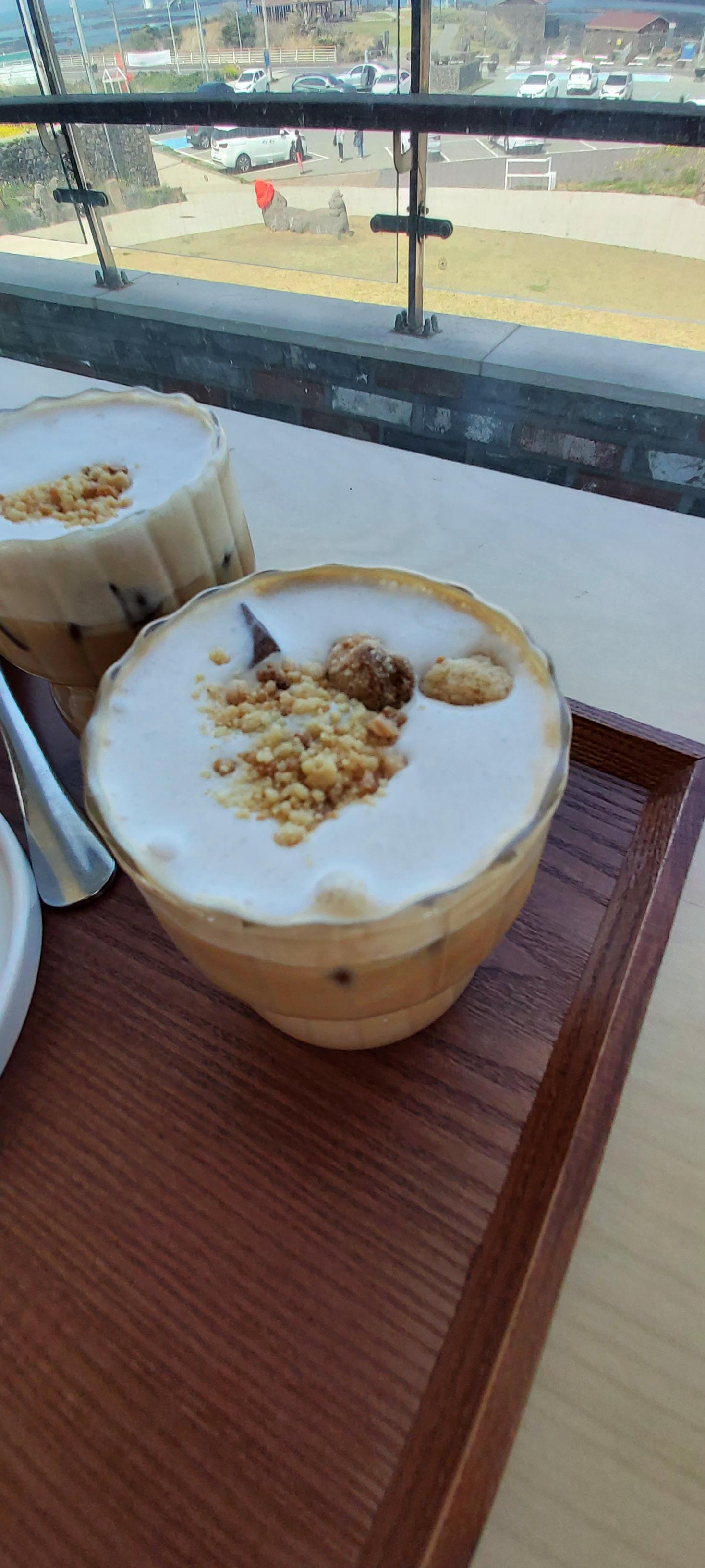 둘다 따뜻한걸 좋아해서 따뜻한 땅콩라떼를 주문했는데