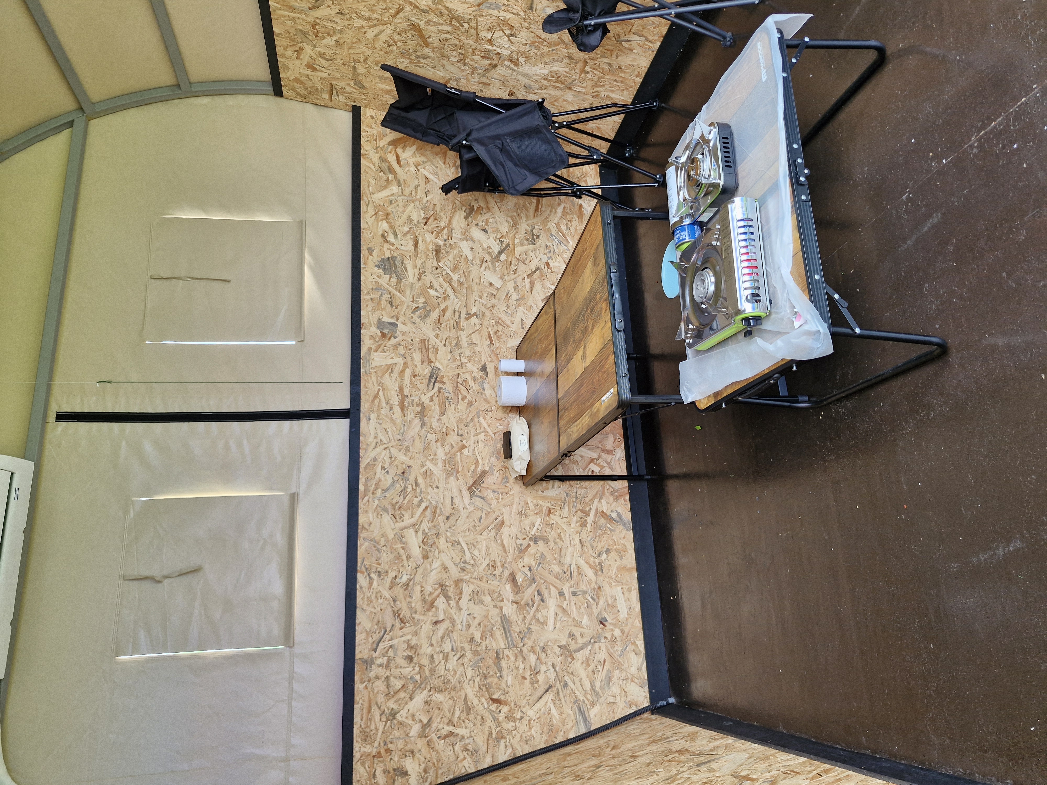 텐트 안에 바베큐를 할 수 있는 공간이 있었고