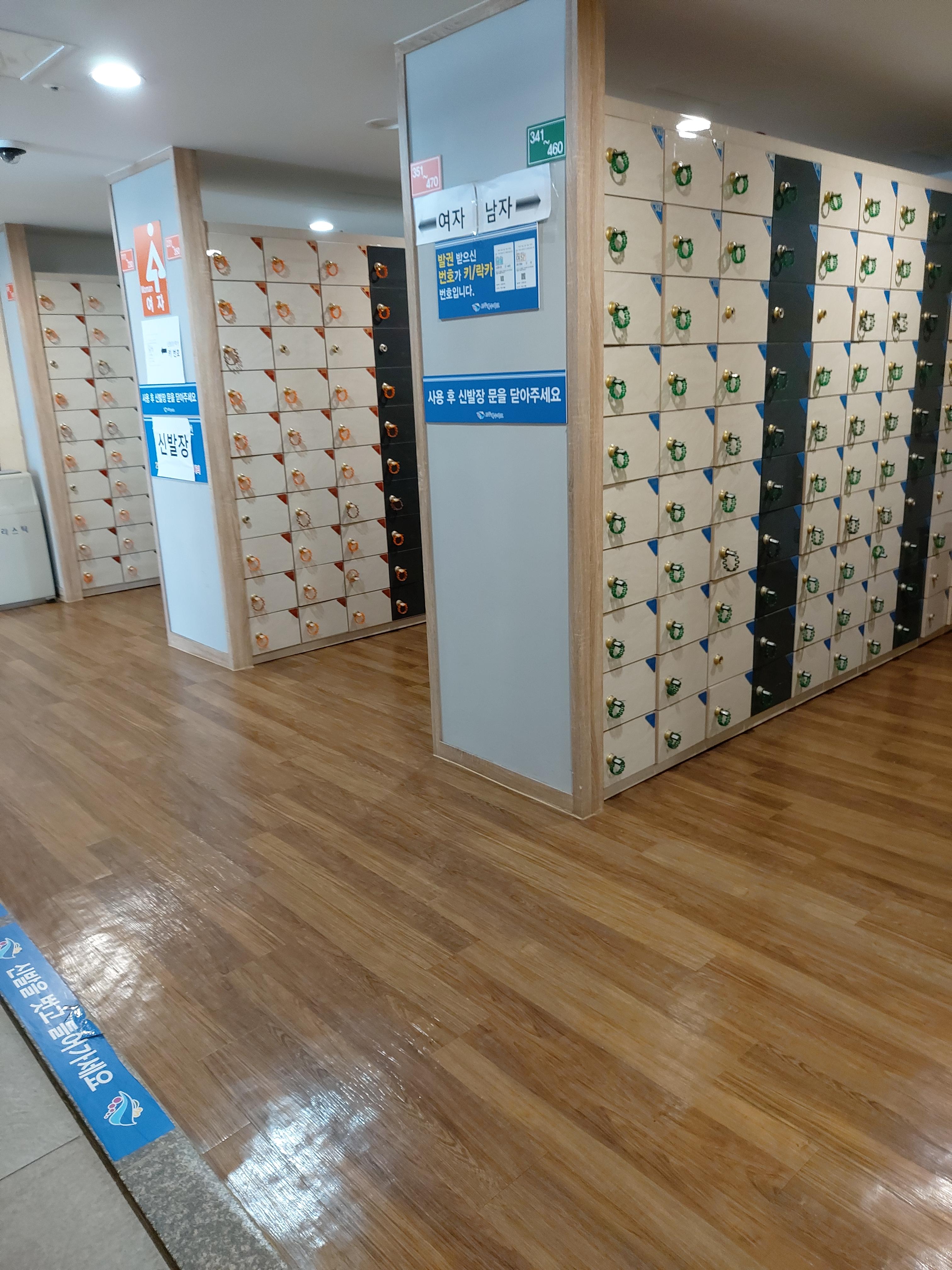 그 번호신발장에 신발을 놓고 마찬가지로 사우나에서도 그 번호칸에 짐 보관~